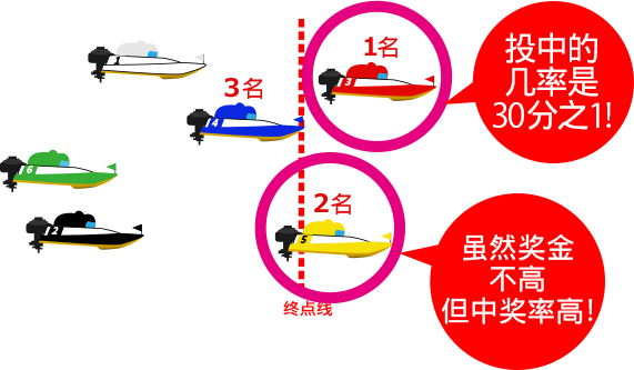 按到达顺序投中第一、二名的赛艇