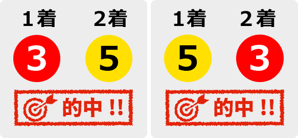 3が1着・5が2着でも的中で、5が1着・3が2着でも的中となります。