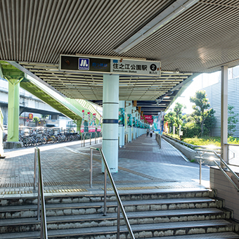 大阪メトロ四つ橋線「住之江公園駅」②出口へ向かいます。