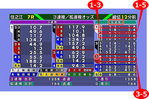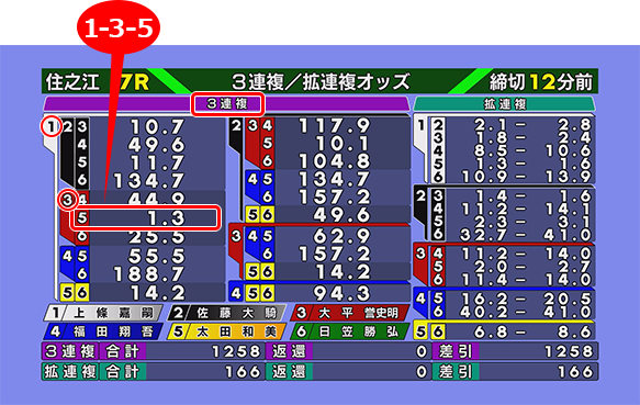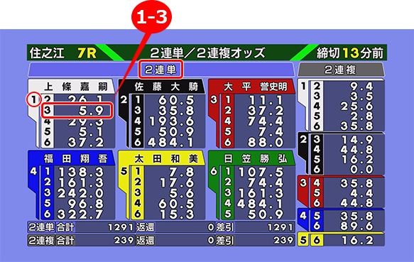 오즈란, 자신이 구매한 주권이 적중한 경우 지불되는 배당금의 배율을 말합니다. 오즈가 ‘50.0’인 주권을 100엔 사서 적중하면 5,000엔이 환급됩니다. 수치가 낮을수록 배율은 낮아지지만 인기 주권이라는 뜻으로 예상 재료가 되기도 합니다. 주권은 마감시간 직전이 가장 발매가 많아지기 때문에 반드시 자신이 구매했을 때의 오즈대로 배당을 얻을 수 있다고 할 수는 없습니다.